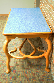 I confess Jesus as my Lord and Savior. I take faith seriously, and when asked to produce pieces for a place of Christian worship, I am always willing to work with Pastors and Laymen and women in expressing their message of Hope in Christ, and the unique presence of Jesus with His church. CROWN OF THORNS & CROSSOne of my favorite pieces. This was an in-shop experiment in creating a braid of wood. It is actually about 15-20 pieces of walnut patterened to braid around each other. The thorns on the walnut braid are cherry, and the cross is white oak, measuring 24" across and 40" tall. This piece was awarded a red ribbon in the 1998 Iowa State Fair. ![]() ![]() ![]() ![]() ![]() ![]() HAND OF THE FATHERThis piece is a large brass casting. My home church had wall pieces of a lamb (the Son), a dove (the Holy Spirit), but couldn't find one of a hand (the Father). Working with a brass foundry, I produced the drawing for the hand and trimmed and polished the casting, then built the frame with red velvet background. ![]() ![]() ![]() ![]() ![]() SHEPHERDS CROOK TABLEA nice example of curved work. The table speaks of four gospels (shepherds crooks) to the four corners of the world (legs) united in the trinity (joined in three places). This table is about three foot wide and five feet long. It is made of white oak. ![]() ![]() ![]() ![]() ![]() ![]() TABLE & CHAIRSOne my first sacred art pieces. This set is still hard at work in the church. A young couple actually requested that the table serve as their wedding altar in their outdoor wedding. ![]() ![]() ![]() ![]() ![]() |